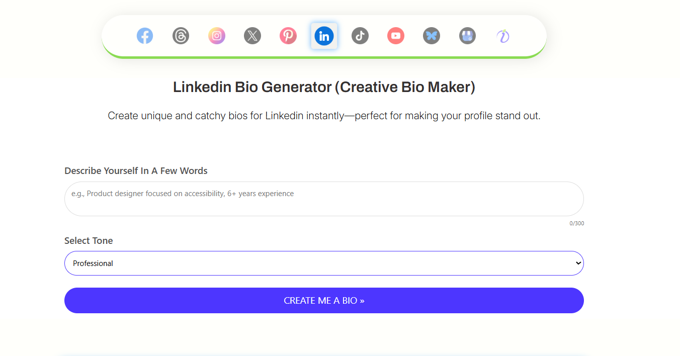 LinkedIn Bio Generator – Indzu Social